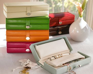 I've always been a sucker for fancy jewelry cases: they feed both sides of my brain as they are beautiful & lovely AND inspire organization and order. I love the green one, of course. These McKenna Travel Folios are from Pottery Barn and come in lots of larger jewelry box sizes as well.
